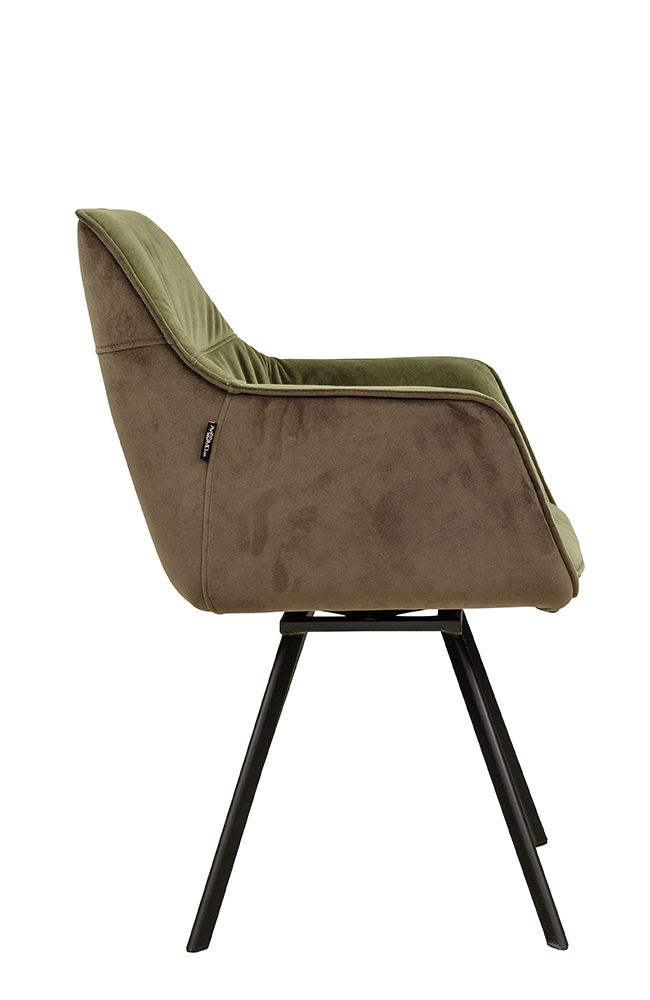 Polsterstuhl mit Armlehnen und Metallgestell schwarz drehbar.